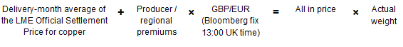 A simplified typical transaction for LME-grade copper in Europe could be priced along these lines: